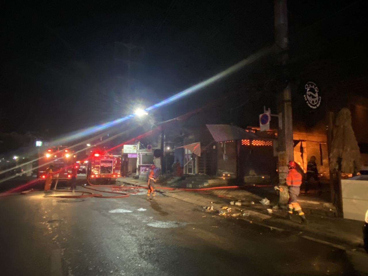 ภูเก็ตไฟไหม้รับอรุณ เพลิงวอดร้านค้ากลางเมืองป่าตองวอดไปหลายล็อก ตำรวจเร่งตรวจสอบ เพื่อสาเหตุ และประเมินค่าความเสียหาย