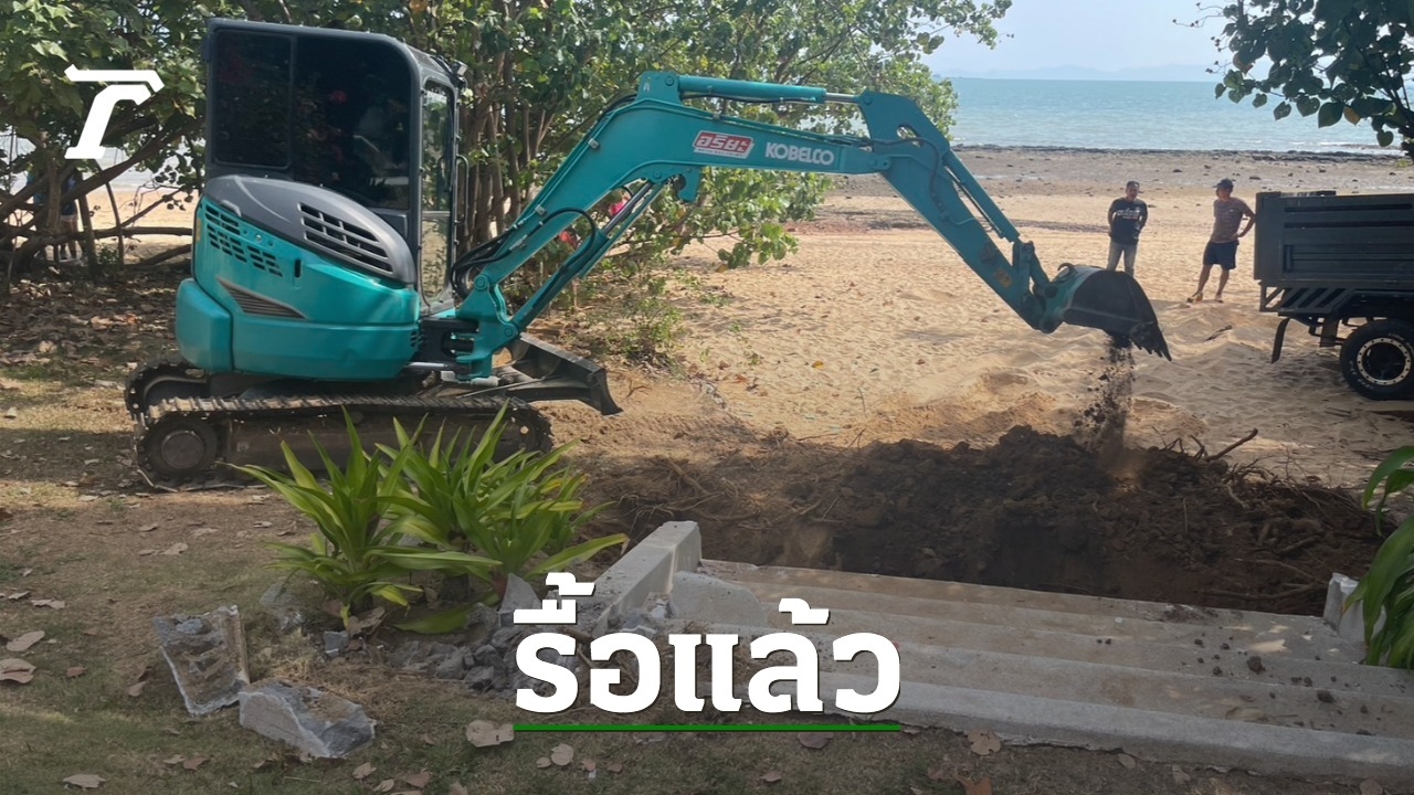 รื้อแล้ว "บันไดเจ้าปัญหา" เจ้าของโครงการวิลล่าหรู นำแบ็กโฮขุดออกทั้งหมด หลังถูกเทศบาลตำบลป่าคลอก สั่งรื้อถอนภายใน 30 วัน หลังจากติดประกาศ