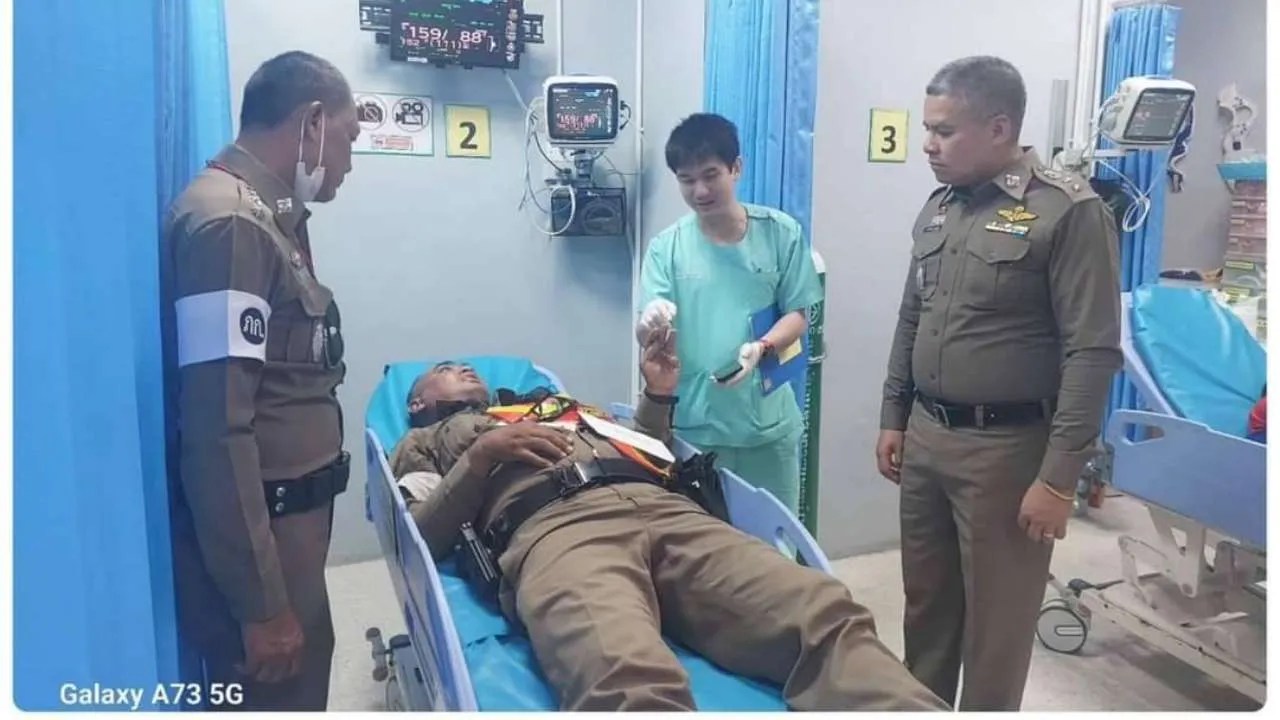 จากการสอบถามแพทย์ผู้รักษาอาการ แจ้งให้ทราบว่า ได้รับบาดเจ็บเพียงเล็กน้อย ต่อมาได้อนุญาตให้เดินทางกลับไปพักฟื้นที่บ้านพัก และได้ดำเนินการจัดการดูแลสวัสดิการสิทธิประโยชน์เจ้าพนักงานที่ได้รับบาดเจ็บจากการปฏิบัติหน้าที่ตามสิทธิให้ครบถ้วน.