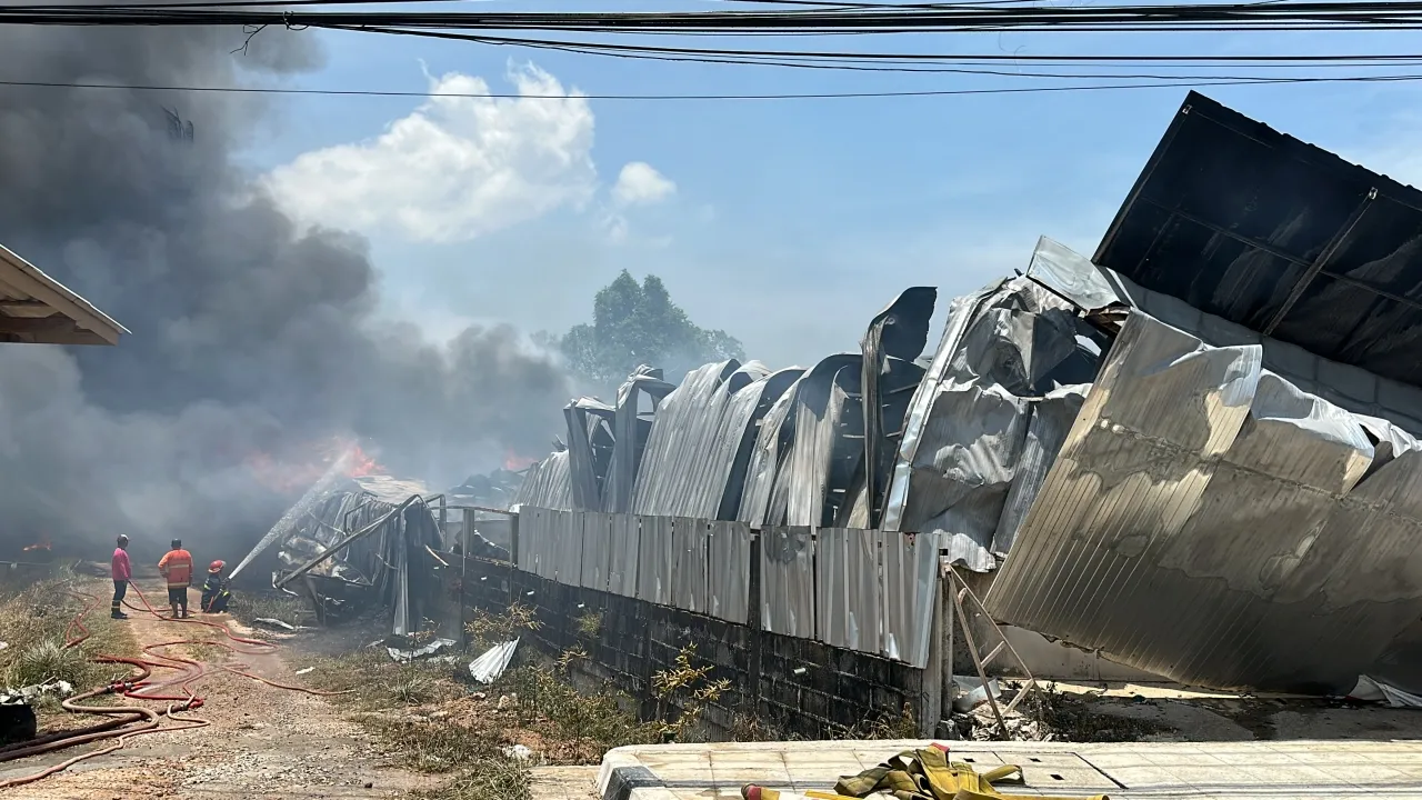 ขณะที่เจ้าหน้าที่กระจายกำลังฉีดน้ำ ปรากฏว่าตัวโครงสร้างอาคารซึ่งเป็นไม้และเหล็กสังกะสีถูกเพลิงไหม้จนเกิดความร้อนทำให้โครงสร้างพังลงมาทั้งอาคารจนเกิดเสียงดังสนั่น เจ้าหน้าที่ที่เข้าระงับเหตุต้องหนีถอยออกมาเพื่อความปลอดภัย ก่อนที่เจ้าหน้าที่จะระดมฉีดน้ำอย่างต่อเนื่อง ซึ่งใช้เวลานานกว่า 2 ชั่วโมง จึงสามารถควบคุมเพลิงไว้ได้