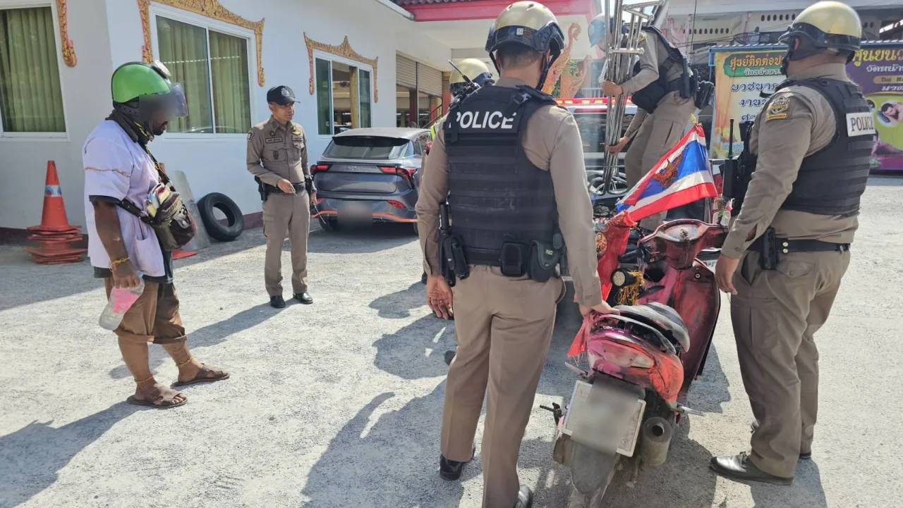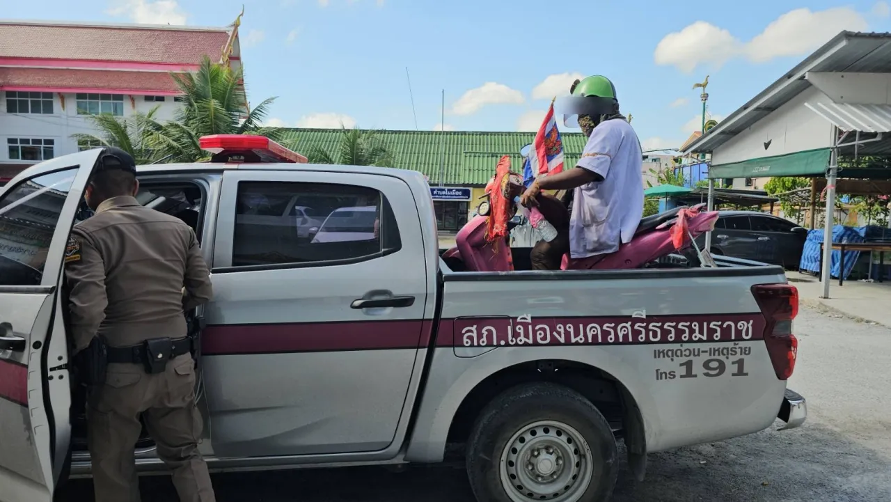 โดยทาง ร.ต.อ.มงคล ภูริวัฒนกุล รอง สวป.หัวหน้าสายตรวจ 20 ได้เข้าพูดคุยสอบถาม แต่ชายคนดังกล่าวพูดจาไม่รู้เรื่อง และพยายามถกเถียงตำรวจว่า มาจับเขาทำไม ตำรวจสอบถามทราบเพียงว่าได้ขี่รถ จยย.สีชมพู จาก จ.สงขลา เพื่อมาเที่ยวที่ จ.นครศรีธรรมราช เท่านั้น