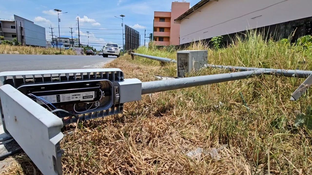 ที่ จ.นครศรีธรรมราช เสาไฟฟ้าส่องสว่างชนิดใช้พลังงานแสงอาทิตย์ ซึ่งถูกติดตั้งมาตั้งแต่ปี 2561 โดยมีมูลค่าต้นละกว่า 6 หมื่นบาท ในหลายเส้นทางของจังหวัดนครศรีธรรมราช อยู่ในสภาพไม่สามารถใช้การได้ ชำรุดไปเกือบ 100 เปอร์เซ็นต์ กำลังกลายเป็นแหล่งสร้างรายได้ให้กับมิจฉาชีพมีการตระเวนก่อเหตุโจรกรรมอย่างต่อเนื่อง แม้เป็นทรัพย์สินของทางราชการ แต่กลับไม่ได้รับความสนใจ หลายเส้นทางอยู่ในสภาพระเนระนาด