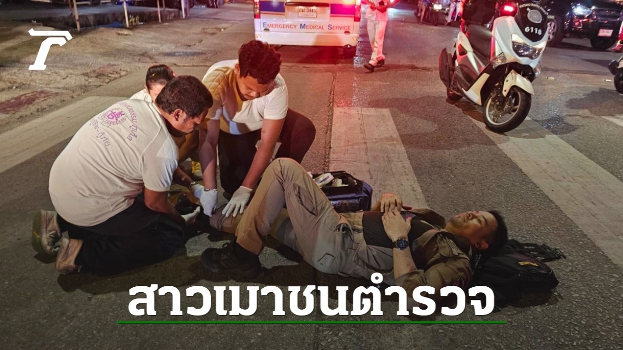 สาวสตูลมาเมาอยู่ภูเก็ต ขี่รถ จยย.ฝ่าไฟแดงตอนหัวรุ่ง พุ่งชนรถสายตรวจ ตำรวจ สภ.ป่าตอง เจ็บ 1 นาย ตรวจแอลกอฮอล์ทะลุ 114 มิลลิกรัมฯ