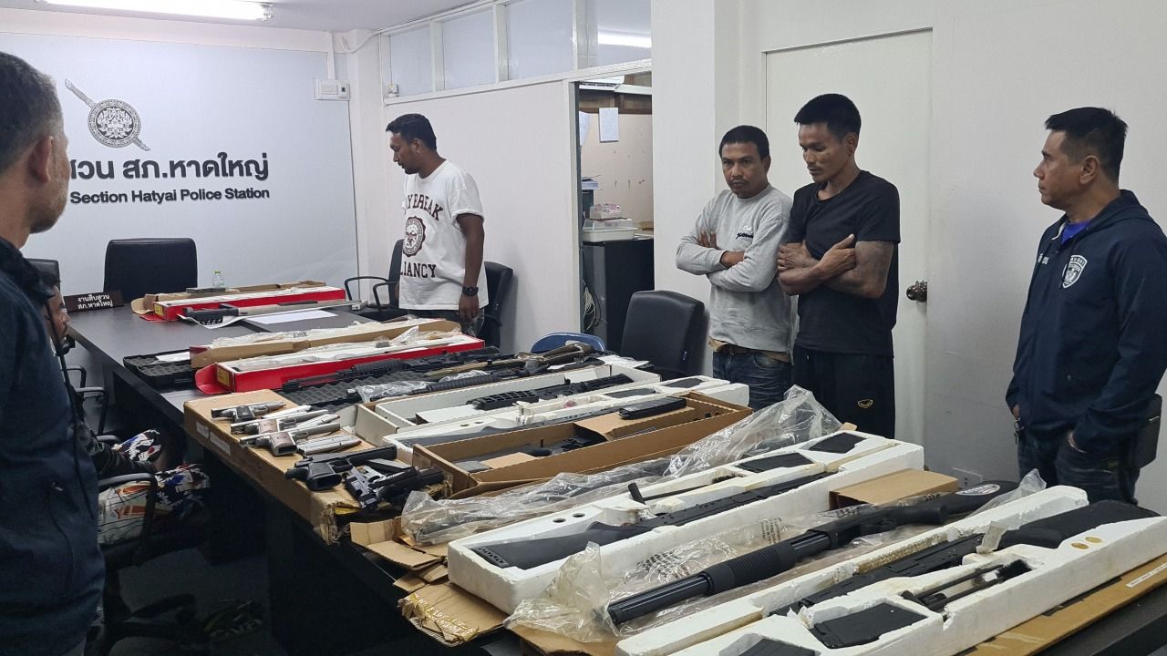ตำรวจรวบยกแก๊ง งัดขโมยปืนจากร้านขายปืนที่หาดใหญ่ ให้พรรคพวกไปขายในตลาดมืด บางส่วนขายเอง ก่อเหตุ 3 คืน ติดปืนสั้น ปืนยาวไป รวม 37 กระบอก นำของกลางบรรทุกรถซาเล้งออกจากร้าน เจอตำรวจสายตรวจพอดี