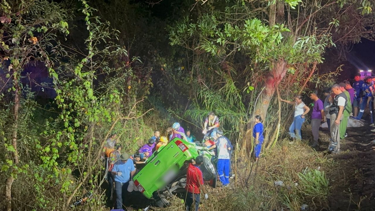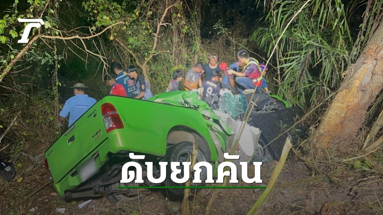 สุราษฎร์ธานี อุบัติเหตุ รถกระบะพุ่งชนต้นไม้ข้างทาง ส่งผลให้มีผู้เสียชีวิต 3 ศพ