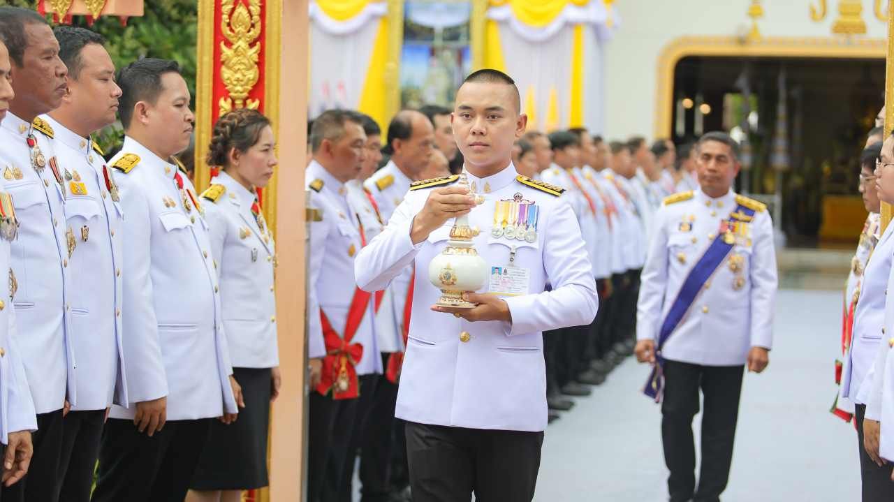 โดย ผวจ.ภูเก็ต จุดธูปเทียนบูชาพระรัตนตรัย ปี่พาทย์บรรเลงเพลงสาธุการ เจ้าหน้าที่อาราธนาศีล ประธานสงฆ์ ให้ศีล จากนั้น ผวจ.ภูเก็ต เชิญใบพลู 7 ใบถวายประธานสงฆ์เจิมใบพลู และประธานสงฆ์ถวายใบพลู 7 ใบแด่พระสงฆ์เถราจารย์ พระสงฆ์เถราจารย์ดับเทียนชัย พระสงฆ์ 10 รูปเจริญพระพุทธมนต์คาถาดับเทียนชัย