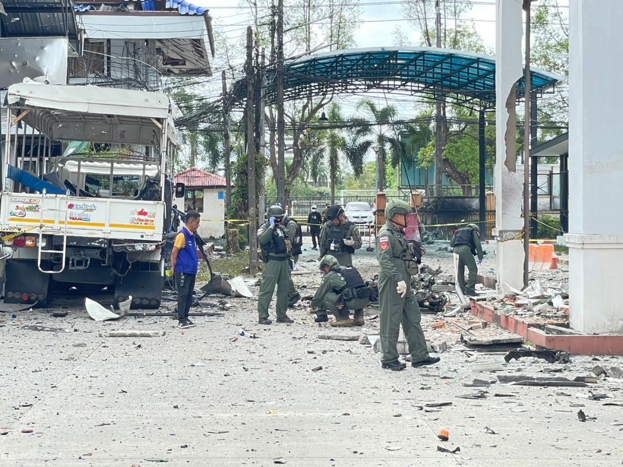 คนร้ายซุกระเบิด 100 กิโลกรัมถล่มที่ว่าการอำเภอสุไหงโก-ลก พบรถกระบะใช้ก่อเหตุแล้วจอดทิ้งกลางป่าสุไหงปาดี เร่งตรวจสอบ