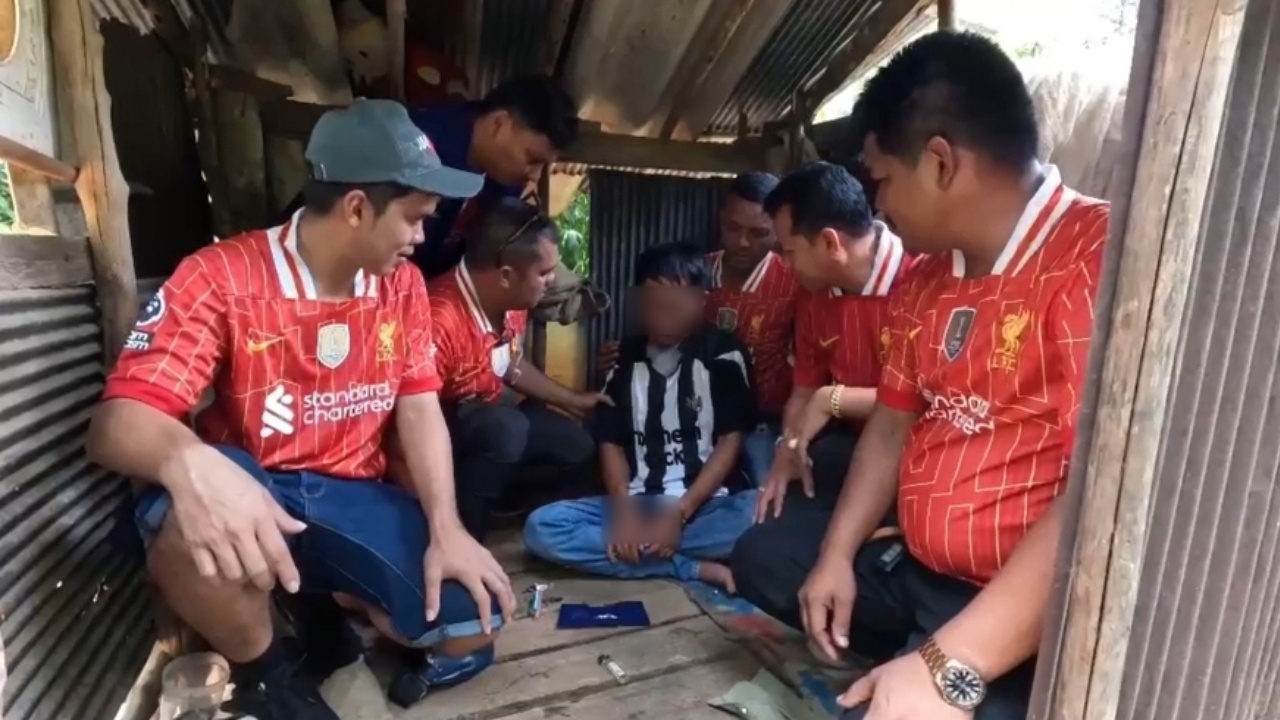 เจ้าหน้าที่ฝ่ายปกครอง วางแผนล่อซื้อ "พ่อค้าลูกชิ้น" รับจ็อบเสริม "ขายยาบ้า" ในเมืองกระบี่ ทำโซเชียลฮือฮาหลังพบภาพตอนจับกุม สวมเสื้อทีมฟุตบอลที่เพิ่งแข่งขันกัน