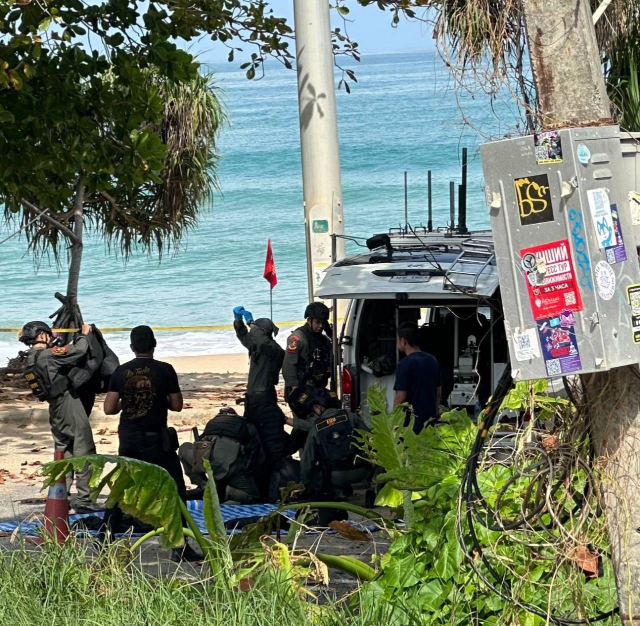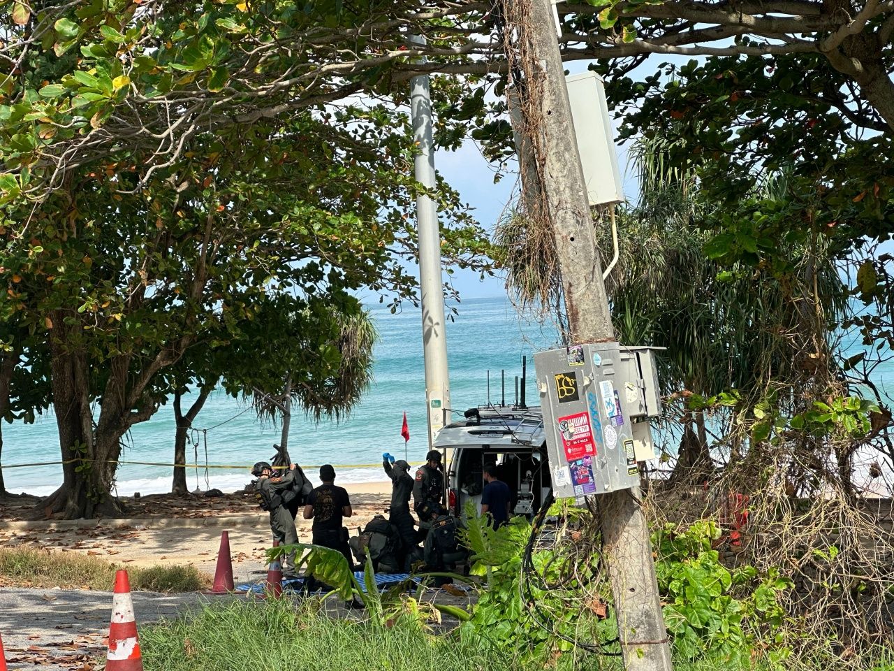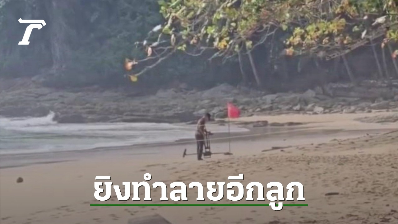 เจ้าหน้าที่ชุด EOD ยิงทำลายวัตถุต้องสงสัยเพิ่มอีก 1 ลูก บริเวณชายหาดสุรินทร์ จ.ภูเก็ต เร่งค้นหาอีกลูก กั้นพื้นที่ไม่ให้นักท่องเที่ยวเข้าบริเวณดังกล่าว