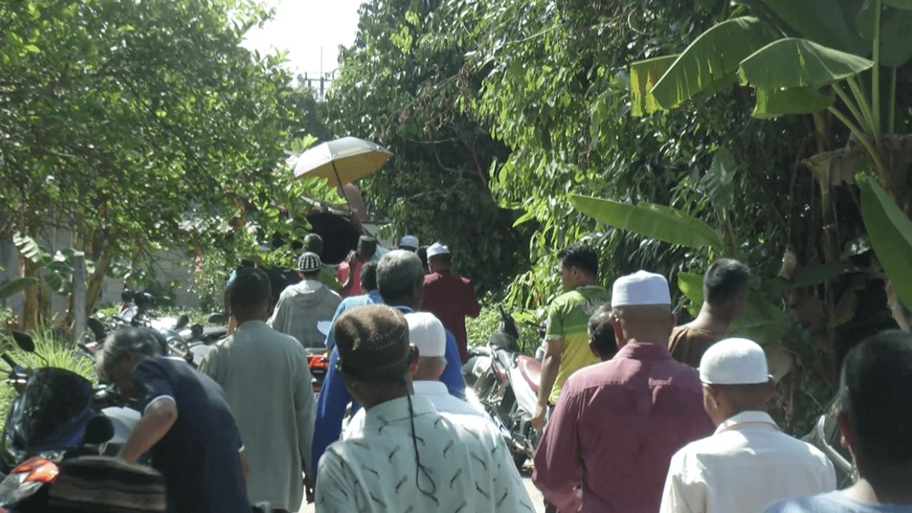 โดยศพของ ด.ต.รุสดี นางอานี ซึ่งเป็นภรรยาและเครือญาติ ได้ประกอบพิธีอาบน้ำศพที่บ้านพัก โดยมีญาติสนิทมิตรสหายและเพื่อนบ้าน เดินทางมาร่วมงานแสดงความอาลัยเป็นครั้งสุดท้ายจำนวนมาก ก่อนที่จะมีการเคลื่อนย้ายศพ ด.ต.รุสดี ไปฝังที่กูโบร์อัลระรี ต.ปะลุรู อ.สุไหงปาดี ในช่วงเวลา 11.30 น.ของวันเดียวกันนี้