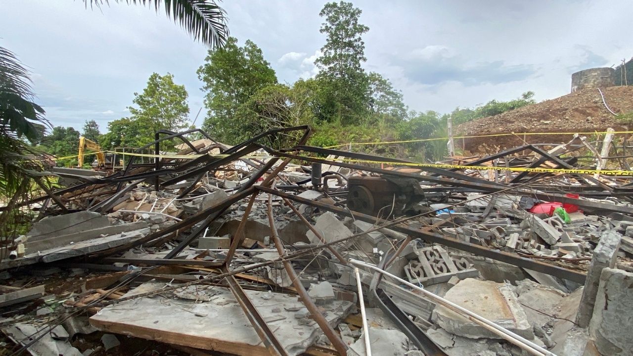 จากนั้นเจ้าหน้าที่ได้เข้าตรวจสอบจุดเกิดเหตุ พบหลุมระเบิดลึก 1 ฟุต กว้าง 1 ฟุต มีซากเศษชิ้นส่วนของระเบิดแสวงเครื่องที่คนร้ายประกอบใส่ไว้ในท่อเหล็กทรงกลม หนักประมาณ 2 ก.ก. ตกกระจายเกลื่อนพื้น ซึ่งจุดเกิดเหตุที่เหมืองแร่มีด้วยกัน 2 จุดใหญ่ ที่เจ้าหน้าที่ได้ตรวจสอบในช่วงวันที่ 25 ส.ค. 68 ที่ผ่านมา คือ จุดที่ 1. ที่ตั้งบริษัทฯ โดยคนร้ายได้มีการทำลายอาคารที่ตั้งของสำนักงาน ด้วยการใช้ของแข็งทุบฝาผนังตัวอาคารและทรัพย์สินเครื่องใช้ในสำนักงานได้รับความเสียหาย นอกจากนี้บ้านพักคนงานได้รับความเสียหายอีก 1 หลัง เหมือนลักษณะคนร้ายใช้รถแบคโฮรื้อถอน จนได้รับความเสียหายเหลือเพียงซากให้เจ้าหน้าที่ได้พบเห็น