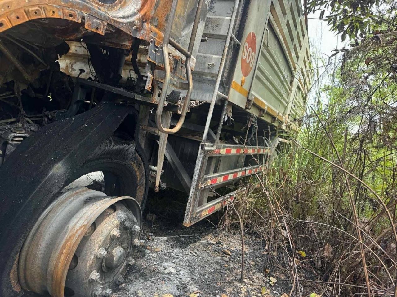 อย่างไรก็ตามหลังคนร้ายปล่อยตัว 1 คนงานที่บังคับให้ขับรถแบคโฮทำลายรถบรรทุกเทท้าย 10 ล้อ คนร้ายยังได้ถือโอกาสขับรถบรรทุกเทท้าย 10 ล้อ จากเหมืองแร่หลบหนีไปอีก 1 คัน และคนร้ายได้นำรถยนต์คันดังกล่าวมาเผาทิ้งที่บริเวณริมถนนสายทางหลวงชนบทที่ 4013 ระหว่างรอยต่อบ้านน้ำวนกับบ้านน้ำหอม ม.1 ต.ช้างเผือก อ.จะแนะ ได้รับความเสียหายอีก 1 คัน