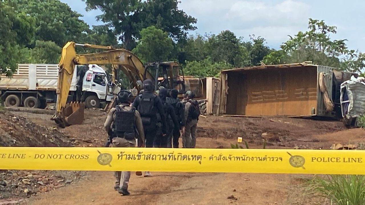 จากการสอบสวนทราบคนงานเหมืองแร่ในเบื้องต้น ทราบว่า ในวันเกิดเหตุที่ 21 ส.ค. 68 ได้มีคนร้ายแต่งกายชุดสีดำ ประมาณ 30 คน มีอาวุธปืนครบมือ บุกเข้ามาจับมัดมือไขว้หลังคนงาน 7 คน แล้วนำไปควบคุมในป่าข้างเหมืองแร่ ส่วนคนงานอีก 1 คน คนร้าย 3 คน ได้ใช้ปืนข่มขู่ให้คนงานดังกล่าวใช้รถแบคโฮของเหมืองแร่ ขับทำลายรถบรรทุกเทท้าย 10 ล้อ 4 คัน พร้อมใช้บุ้งกี๋ของรถแบคโฮพลิกรถบรรทุกเทท้าย 10 ล้อให้ตะแคง ส่วนคนร้ายที่เหลือได้เข้าไปทำลายอาคารสำนักงานและบ้านพัก โดยใช้เวลานานกว่า 2 ชั่วโมง แล้วคนร้ายได้ปล่อยตัวคนงานดังกล่าว แล้วคนงานดังกล่าวจึงมาช่วยแก้มัดคนงานที่ถูกจับมือไขว้หลัง แล้วจึงได้แจ้งเจ้าหน้าที่มาตรวจสอบที่เกิดเหตุ