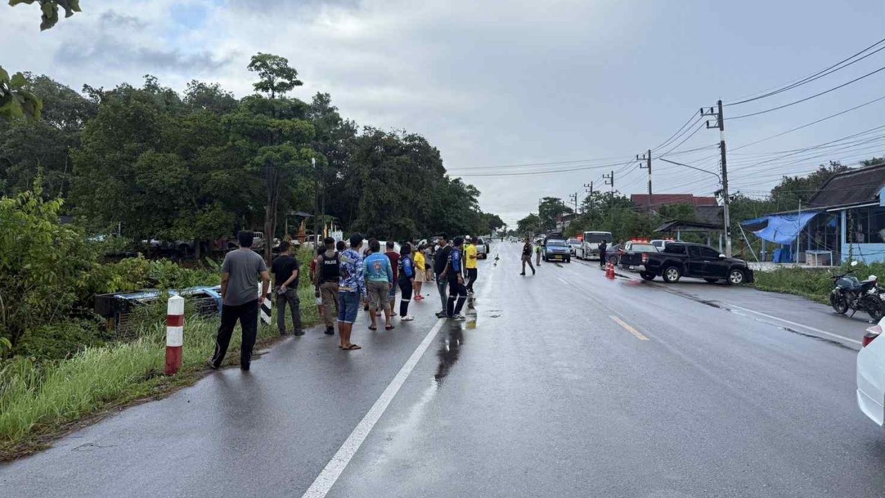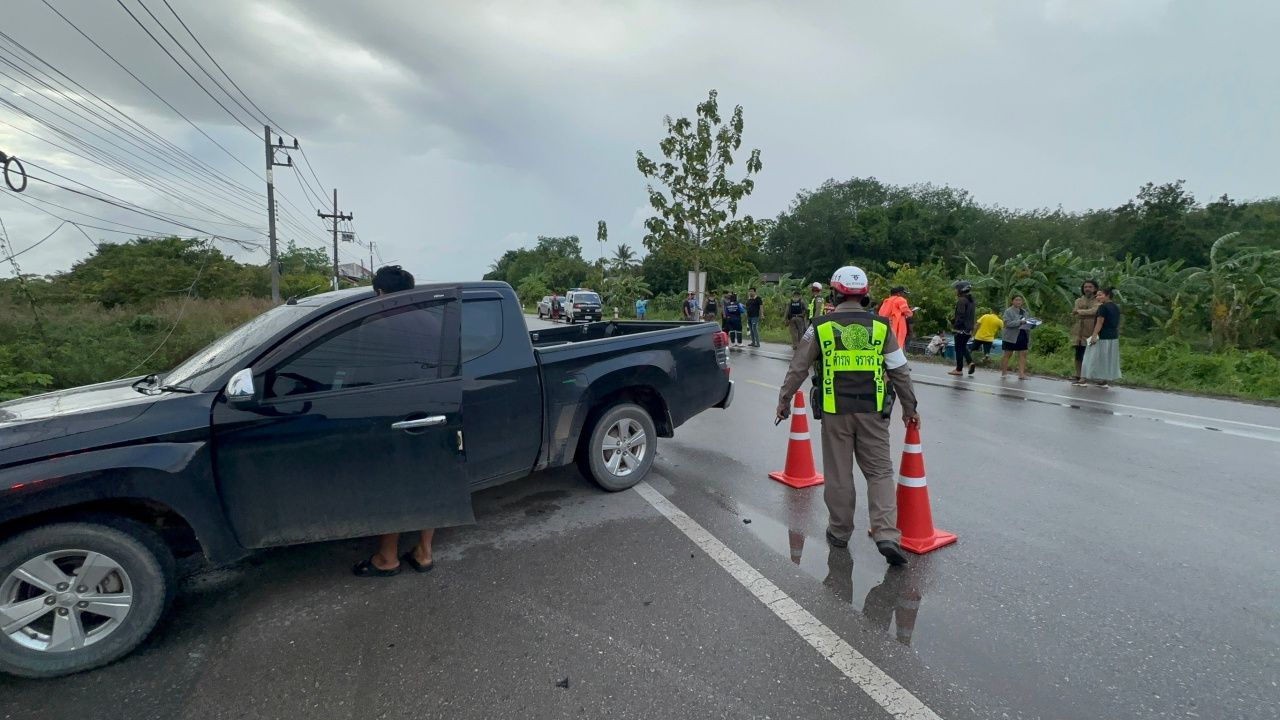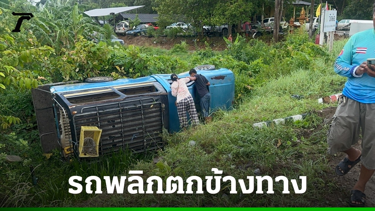 ฝนตกถนนลื่น กระบะเสียหลัก ไถลเบียด "รถสองแถว" โดยสารนักเรียน พลิกตะแคงตกคูข้างทาง พื้นที่ จ.พัทลุง ส่งผลให้บาดเจ็บ รวม 18 ราย