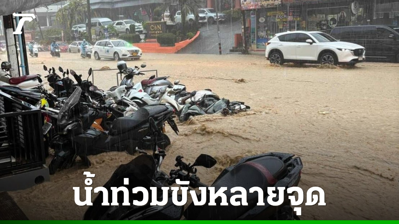 "ฝนตกหนัก" ในจังหวัดภูเก็ต ต่อเนื่องหลายชั่วโมง ทำ "น้ำท่วมขัง" หลายพื้นที่ บางจุดรถจักรยานยนต์ไม่สามารถสัญจรผ่านได้