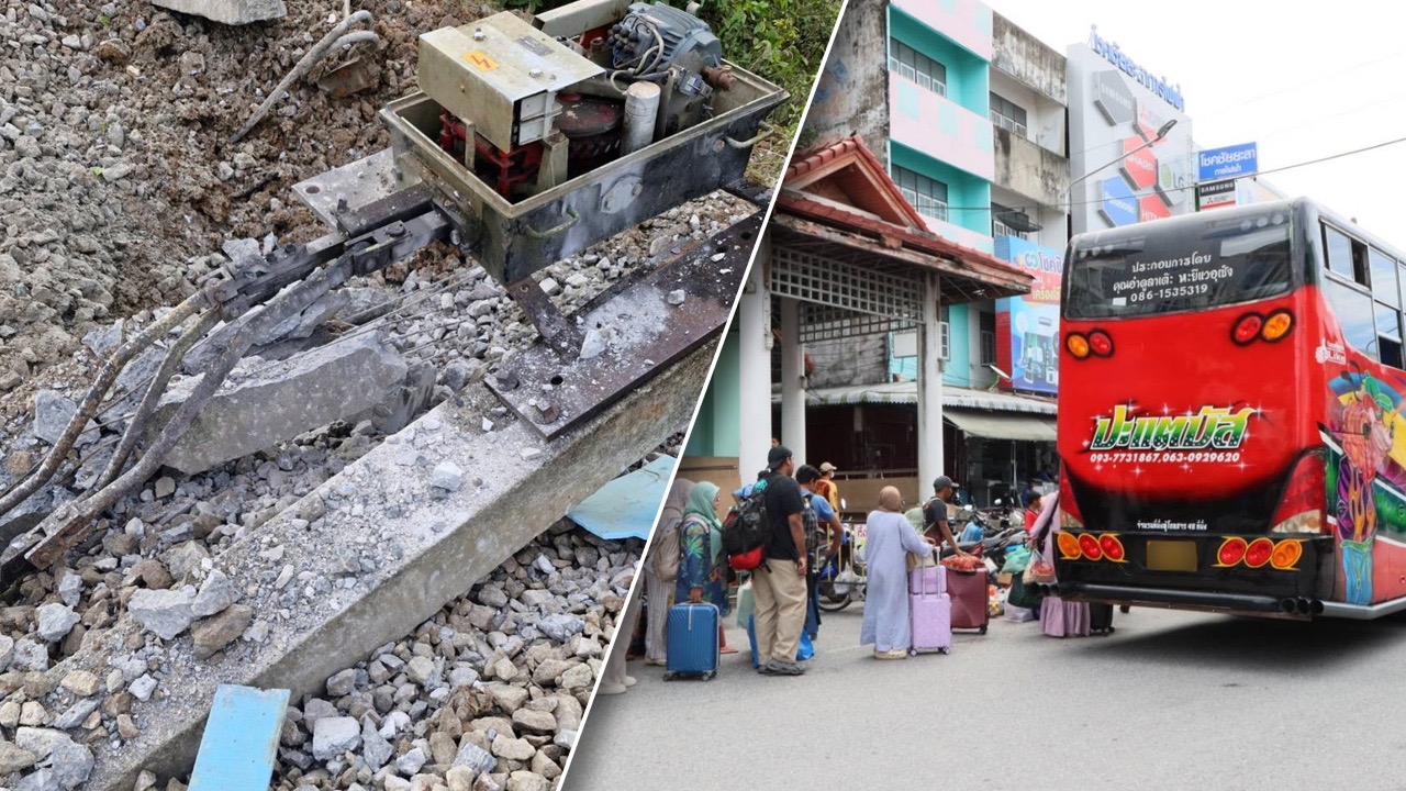 เจ้าหน้าที่สถานีรถไฟยะลา จัดเตรียมรถบัส เร่งขนถ่ายผู้โดยสารไปยังปลายทาง หลังเกิดเหตุระเบิด บริเวณรางรถไฟ "สถานีมะรือโบ" จ.นราธิวาส มีผู้บาดเจ็บ 2 ราย