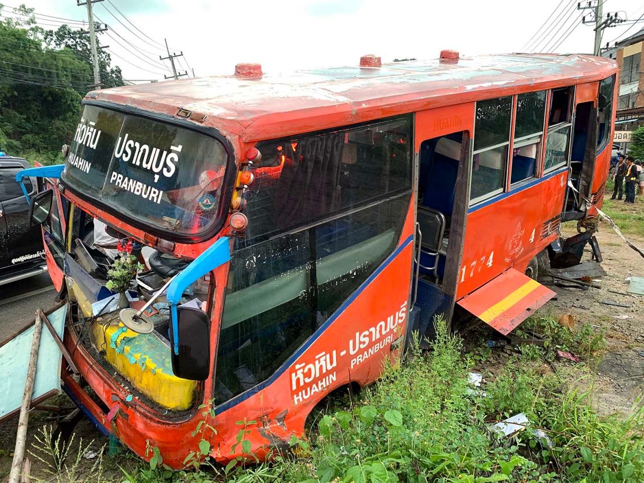 เมื่อเวลา 16.30 น. ของวันที่ 30 ตุลาคม 2568 ศูนย์วิทยุรับแจ้งเหตุ 191 สภ.หัวหิน จ.ประจวบคีรีขันธ์ รับแจ้งเกิดอุบัติเหตุรถบัสโดยสารชนเสาไฟฟ้าข้างทาง บริเวณถนนสายหัวหิน - หนองพลับ เขตเทศบาลนครหัวหิน มีผู้บาดเจ็บหลายราย จึงประสานรถกู้ภัยมูลนิธิสว่างหัวหินธรรมสถานรุดไปยังที่เกิดเหตุ บริเวณทางลงช่องเขาด่าน ก่อนถึงร้านตี๋เฮงติ่มซำ ประมาณ 50 เมตร พบรถบัสโดยสาร 6 ล้อ สภาพเก่า สีส้ม ประจวบฯ วิ่งระหว่างหัวหิน - ปราณบุรี จอดอยู่ริมถนน ในสภาพเพลารถขาด ล้อหน้าหลุด ชิ้นส่วนกระจัดกระจาย ซีกซ้ายเสียหายพังทั้งแถบ