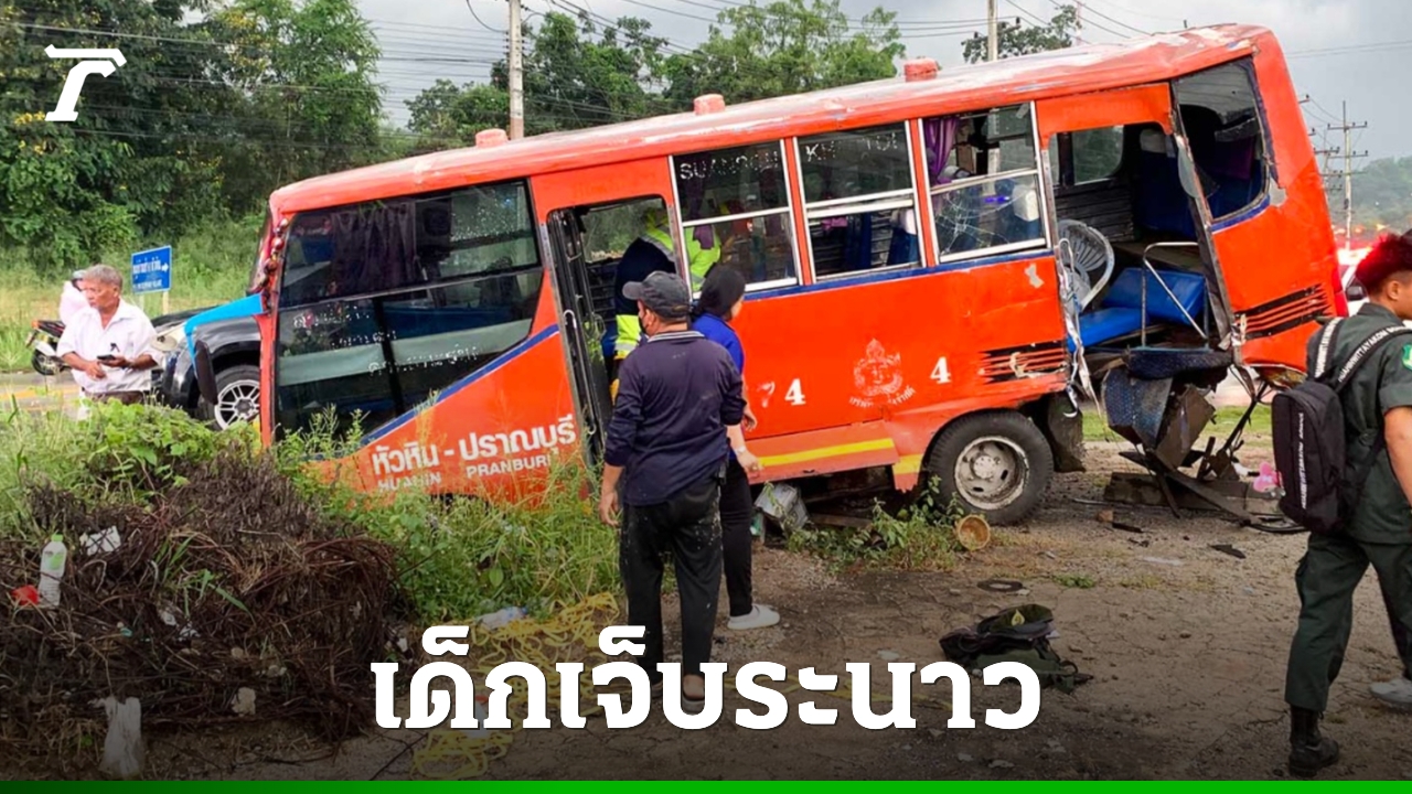 อุบัติเหตุรถบัสบรรทุกนักศึกษา รด.มาเต็มคัน เจอฝนลื่นเสียหลักชนเสาไฟข้างทาง ได้รับบาดเจ็บระนาว นำส่ง รพ.หัวหิน ขณะที่คนขับเผยเคยประกาศขายรถบัสแต่ไม่ทันมีคนซื้อก็มาเกิดเหตุเสียก่อน