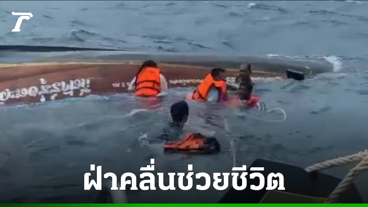 คลิปนาทีช่วยนักท่องเที่ยว 4 ชีวิต เกาะเรือลอยกลางทะเล หลังเรือล่มใกล้เกาะปอดะ จ.กระบี่ ท่ามกลางคลื่นลมแรง กระทั่งนำขึ้นเรือได้อย่างปลอดภัย
