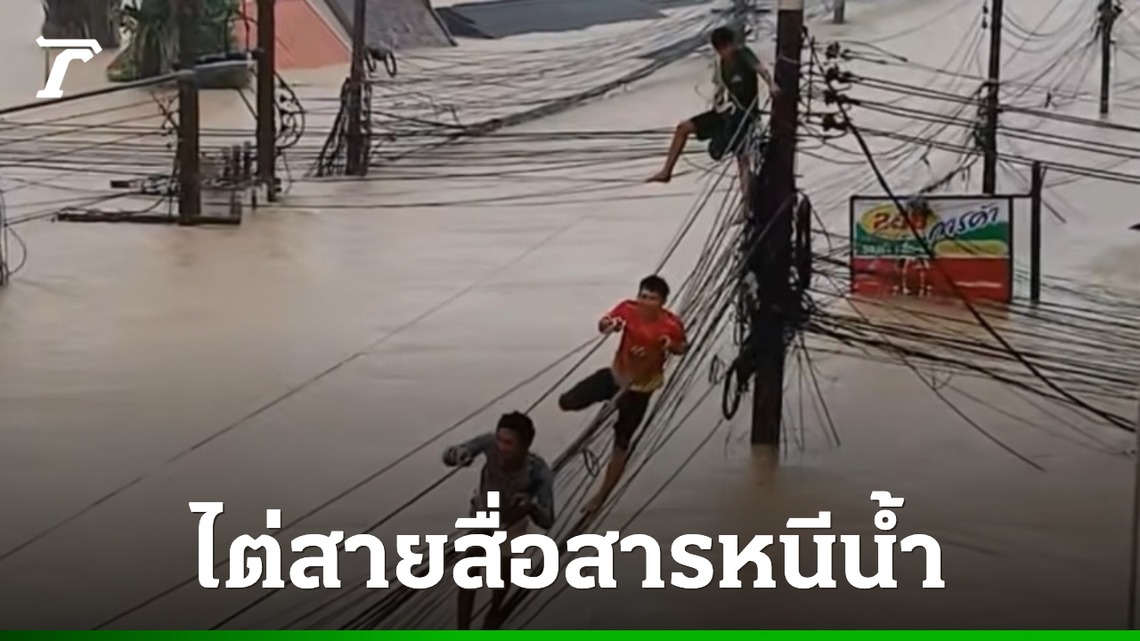 โซเชียลแชร์คลิป ชาวบ้านบริเวณวัดพุทธิการาม ที่สงขลา ชุมชนกลางเมืองหาดใหญ่ ไต่สายสื่อสารหนีน้ำท่วม พบน้ำเริ่มสูงขึ้นถึงชั้น 2 อาหารเริ่มหมด
