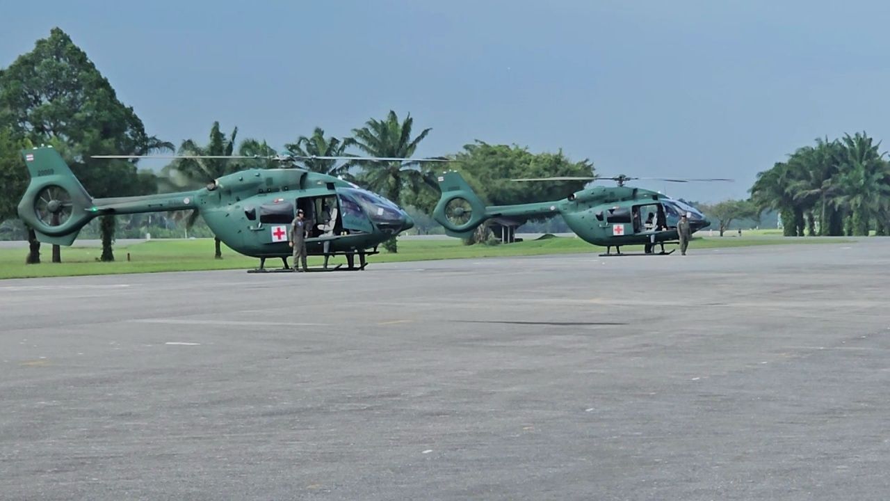 หลังจากนั้นได้มีเฮลิคอปเตอร์แบบ H145M ได้ร่อนลงจอดอีก 2 ลำ ซึ่งบินตรงมาจากจังหวัดลพบุรี เพื่อเติมน้ำมันเชื้อเพลิงเช่นกัน โดย ฮ.แบบ H145M ได้เปลี่ยนภารกิจเป็น ฮ.พยาบาลติดสัญลักษณ์กาชาด หลังจากเติมเชื้อเพลิงแล้วได้เร่งเดินทางไปยังอำเภอหาดใหญ่ทันที และถัดจากนั้นไม่นานยังมี ฮ.แบบ MI17 ลงเติมน้ำมันและเร่งเดินทางต่อไปเช่นเดียวกัน