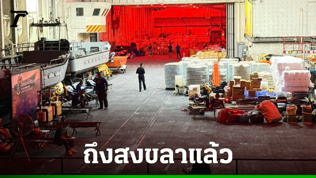 หลังเดินทางนานกว่า 24 ชม. "เรือหลวงจักรีนฤเบศร" ทอดสมอแล้วที่หาดสมิหลา เตรียมช่วยน้ำท่วมหาดใหญ่เร่งด่วน นำผู้ประสบภัยออกจากจุดวิกฤต