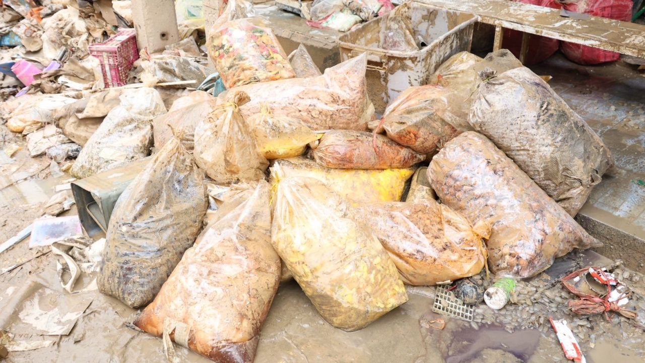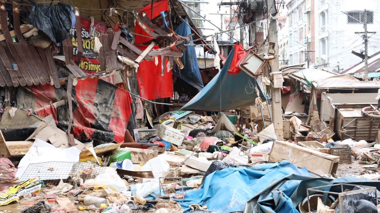 นอกจากนี้ ในพื้นที่บางส่วนของตลาด เริ่มมีกลิ่นเน่าเหม็นจากสิ่งปฏิกูลและเศษซากที่จมอยู่ใต้น้ำเป็นเวลานาน ส่งผลให้การฟื้นฟูต้องเร่งดำเนินการ ทั้งด้านสาธารณสุขและการกำจัดขยะอย่างเร่งด่วน ขณะที่ถนนจำนวนมากรอบตลาดยังเต็มไปด้วยโคลนหนา ขยะมูลฝอย และเศษวัสดุต่าง ๆ ที่ถูกน้ำพัดมากองทับถม ทำให้การเดินทางและการทำความสะอาดเป็นไปอย่างยากลำบาก