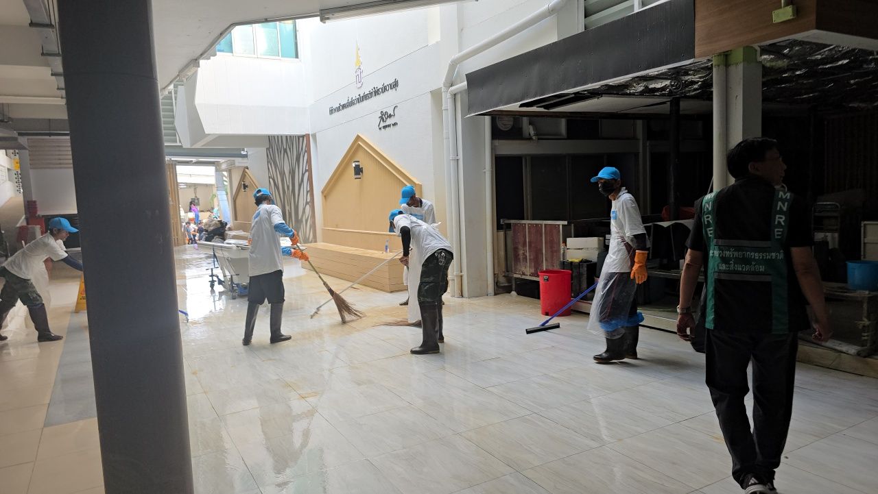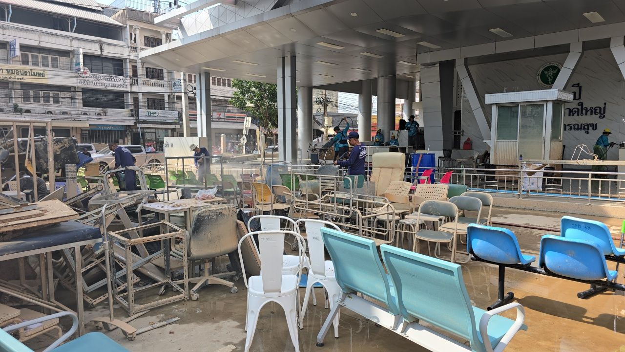 วันที่ 4 ธ.ค. 68 ผู้สื่อข่าวรายงานถึงบรรยากาศที่โรงพยาบาลหาดใหญ่ จ.สงขลา เจ้าหน้าที่จากหลายหน่วยกำลังเร่งเคลียร์บริเวณชั้น 1 ของโรงพยาบาลหาดใหญ่ที่ถูกน้ำท่วมพังเสียหาย เพื่อให้สามารถเข้ามาเปิดให้บริการรักษาประชาชนโดยเร็วที่สุด โดยเฉพาะพื้นที่จุดรับผู้ป่วยทั่วไป ผู้ป่วยฉุกเฉิน ห้องเด็ก ห้องยา นับเป็นเซ็นเตอร์สำคัญของโรงพยาบาลหาดใหญ่ คาดว่าอาจจะต้องใช้เวลาอย่างน้อย 1 สัปดาห์ จึงจะสามารถกลับมาเปิดให้บริการได้ แต่อาจจะไม่เต็มระบบเนื่องจากบริเวณชั้น 1 ถูกน้ำท่วมทั้งหมด