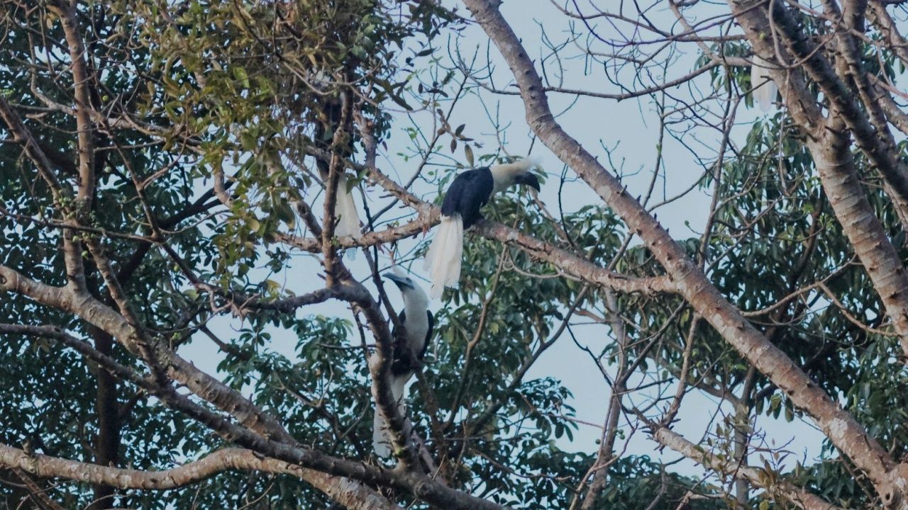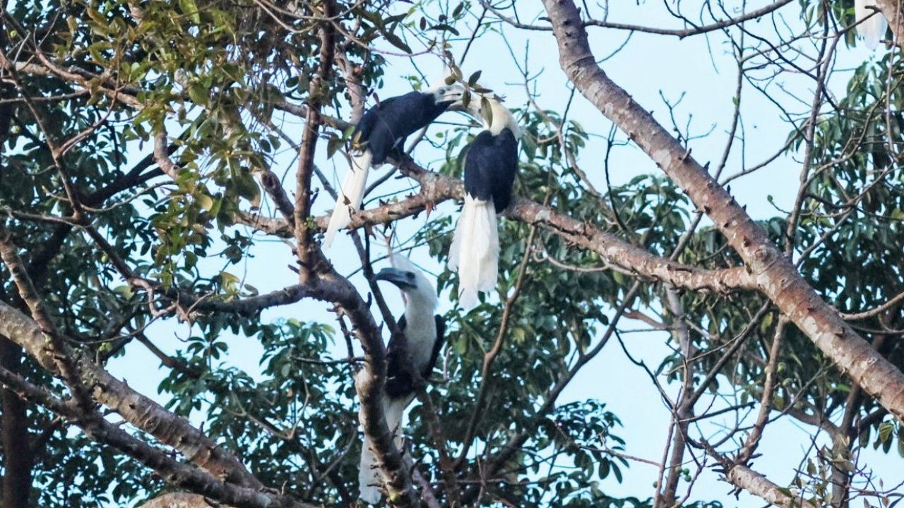 เปิดภาพความสมบูรณ์ "นกเงือกหัวหงอก" 7-8 ตัว สัตว์ป่าคุ้มครองที่ใกล้สูญพันธุ์ในไทย โผล่อุทยานแห่งชาติศรีพังงา บินเกาะกิ่งไม้ ส่งเสียงร้องทักทายเจ้าหน้าที่