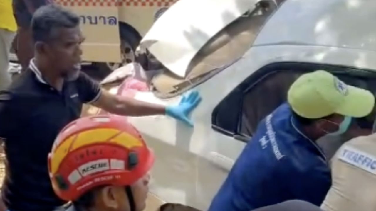 พบรถเก๋งยี่ห้อฮอนด้าสีขาวทะเบียนสตูล ชนกับเสาไฟฟ้าข้างทาง สภาพพังยับเยินเกือบทั้งคัน ส่วนคนขับได้รับบาดเจ็บสาหัสติดอยู่ในรถ ทางกู้ภัยฯ ใช้อุปกรณ์ตัดถ่างเร่งช่วยเหลือนำส่ง รพ.สตูล และเสียชีวิตในเวลาต่อมา