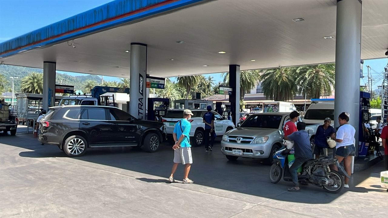 เหตุสู้รบในตะวันออกกลาง ทำคนบนเกาะสมุย ทั้งชาวบ้าน-ผู้ประกอบการ ตื่นน้ำมันขาดแคลน นำรถมาเข้าคิวเติม จนแถวยาวเป็นกิโล ขณะที่ปั๊มต้องสั่งซื้อน้ำมันเพิ่ม