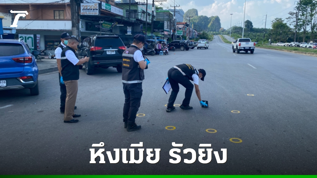 ที่กระบี่ หนุ่มเห็นเมียขึ้นรถคันอื่น พยายามเรียกให้เปิดกระจก แต่กลับขับหนี ชักปืนรัวยิง 9 นัด เสียงดังสนั่น ปลอกกระสุนเกลื่อนถนน ตร.เร่งตามตัวมาดำเนินคดี
