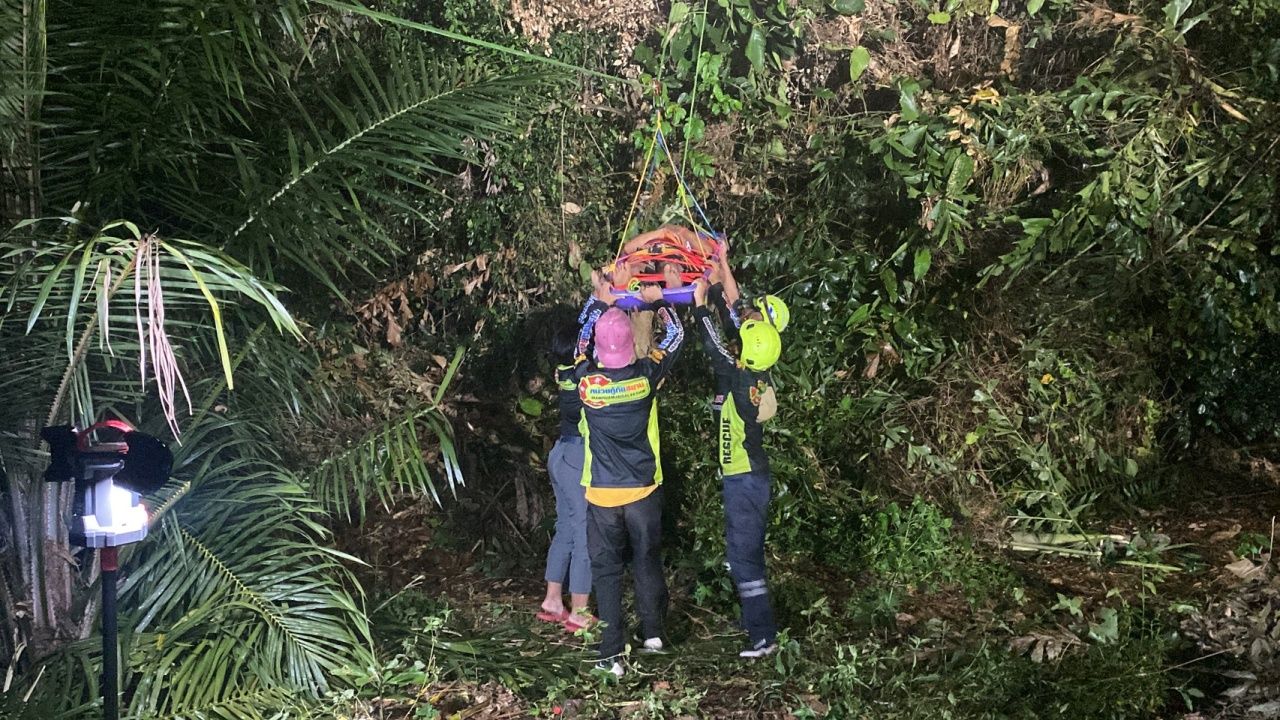 กู้ภัยระดมช่วย หนุ่มเดินขึ้นเขาหาของป่า พลัดตกลึกกว่า 5 เมตรที่ อ.ทุ่งสง จ.นครศรีธรรมราช ใช้เวลานานกว่าหลาย ชม. จึงสำเร็จ รีบนำส่งรักษาต่อที่โรงพยาบาล อาการยังสาหัส