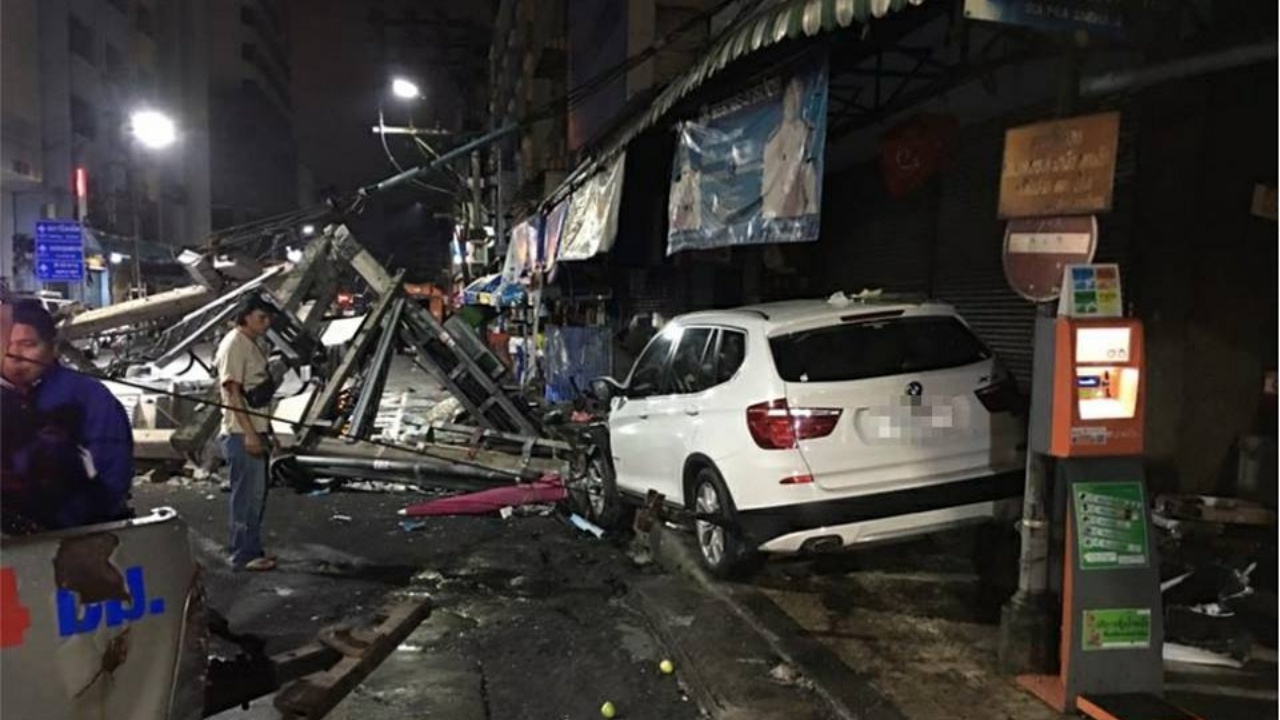 ทั้งนี้ ช่วงตี 3 ที่ผ่านมา ได้เกิดอุบัติเหตุรถเก๋ง BMW รุ่น X3 สีขาว หมายเลขทะเบียน 3กผ 8845 กรุงเทพมหานคร พุ่งชนเสาไฟฟ้า ซึ่งเป็นเสาคู่อย่างแรงจนหักโค่นลงมาทั้งต้นและหม้อแปลงขนาดใหญ่ รวมถึงอุปกรณ์ไฟฟ้าซึ่งพังเสียหายทั้งหมด ในขณะที่สภาพรถเก๋งคันเกิดเหตุด้านหน้าพังยุบเข้ามาแต่คนขับปลอดภัย เนื่องจากถุงลมนิรภัยทำงาน ส่วนสาเหตุตำรวจอยู่ระหว่างเรียกตัวเจ้าของรถมาทำการสอบสวน