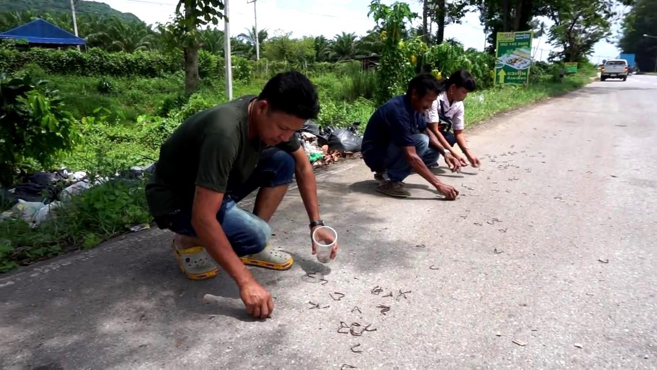 สามีภรรยาชาวสวน โร่แจ้งหมวดการทางหลวงหลังสวน หลังรถกระบะเหยียบโดนตะปูเรือใบบนถนนสายเอเชีย ชาวบ้านออกมาช่วยกันเก็บได้นับร้อยตัว จนท.เผยเกิดเหตุมา 3 วันแล้ว ออกเก็บทุกวัน แต่ยังจับคนร้ายไม่ได้ คาดฝีมือมิจฉาชีพ