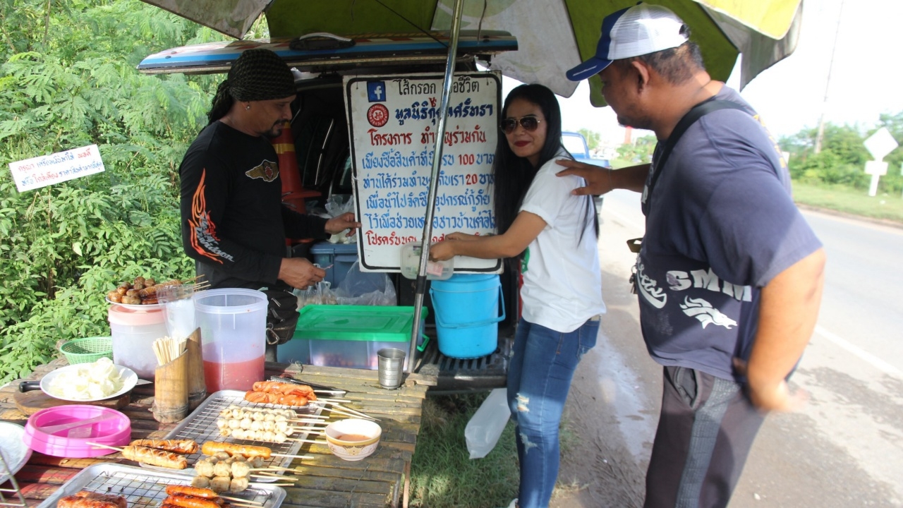 วันที่ 19 พ.ค. ที่ จ.สุราษฎร์ธานี ผู้สื่อข่าวรายงานว่า พบ นายพฤหัส คงมีสุข อายุ 43 ชาว ต.ทุ่งกง อ.กาญจนดิษฐ์ พ่อค้าขายลูกชิ้นปิ้ง-ไส้กรอกย่าง ริมถนนสายสุราษฎร์-นครศรีธรรมราช หมู่ 2 ต.ท่าทองใหม่ โดยตั้งขายคู่รถกู้ภัยกุศลศรัทธาสุราษฎร์ธานี พร้อมเขียนป้ายด้วยสีมีข้อความว่า "ไส้กรอกเพื่อชีวิต มูลนิธิกุศลศรัทธาสุราษฎร์ธานี โครงการทำบุญร่วมกัน เพียงซื้อสินค้าที่นี่ครบ 100 บาท ท่านได้ร่วมทำบุญกับเรา 20 บาท เพื่อนำไปจัดซื้ออุปกรณ์กู้ชีพ ไว้เพื่อช่วยเหลือชาวบ้านต่อไป โปรดรับบุญ รับกุศลร่วมกับเรา" ซึ่งได้รับความสนใจจากลูกค้าที่ผ่านไปผ่านมา ช่วยซื้อกันอย่างต่อเนื่อง