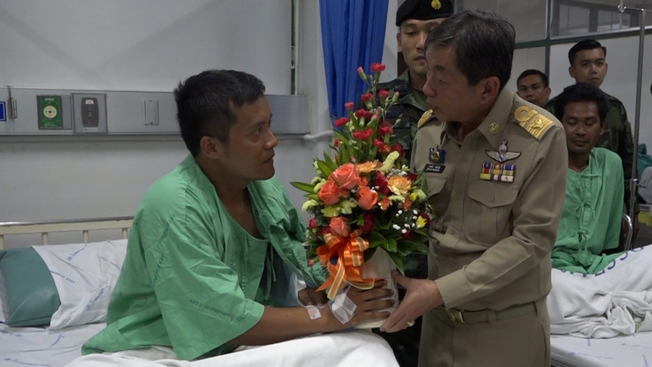 สมเด็จพระเจ้าอยู่หัว ทรงพระกรุณาโปรดเกล้าฯ ให้ ผวจ.ยะลา นำแจกันดอกไม้และกระเช้าพระราชทานมอบให้กับทหาร ฉก.ยะลา 4 นาย ที่ได้รับบาดเจ็บจากเหตุลอบวางระเบิด ขณะที่ศูนย์ช่วยเหลือเยียวยาฯ มอบเงินช่วยเหลือรายละ 1 หมื่น...