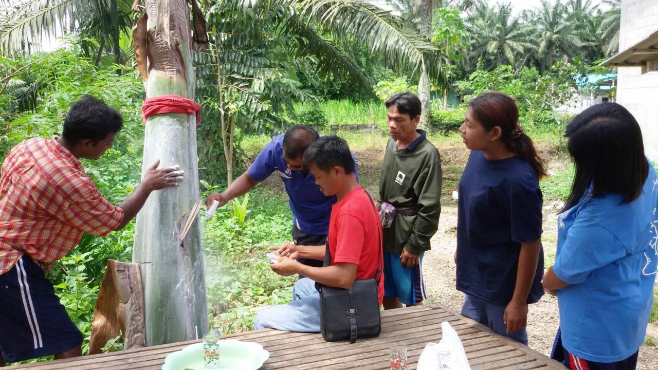นายสมศักดิ์ นวลสมศรี พนักงานประจำสหกรณ์กองทุนสวนยางหนองปง เปิดเผยว่า ต้นกล้วยดังกล่าวได้พันธุ์มาจากคนทางภาคอีสาน ที่มาทำงานที่สหกรณ์ฯ ได้นำมาปลูกไว้ประมาณ 1 ปีแล้ว และเมื่อช่วง 4-5 วันที่ผ่านมา ตนสังเกตเห็นว่ามีปลีกล้วยโผล่ออกมา แต่กลับมีรูปร่างประหลาด ไม่เคยเห็นมาก่อน จึงชวนชาวบ้านมาดูต่างก็แปลกใจไปตามกัน ซึ่งต้นกล้วยดังกล่าวชาวบ้านเรียกว่า กล้วยนวล
