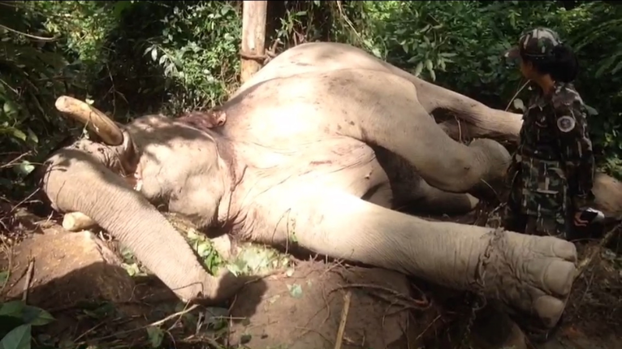 จนท.อช.ใต้ร่มเย็น เข้าตรวจสอบหลังได้รับแจ้งช้างป่าที่ลงมาหาของกินในพื้นที่ชาวบ้าน ได้ใช้งาแทงช้างบ้านที่เลี้ยงไว้จนเสียชีวิต โดยช้างที่ถูกแทงอยู่ระหว่างถูกผูกไว้เพื่อรอการใช้งาน...