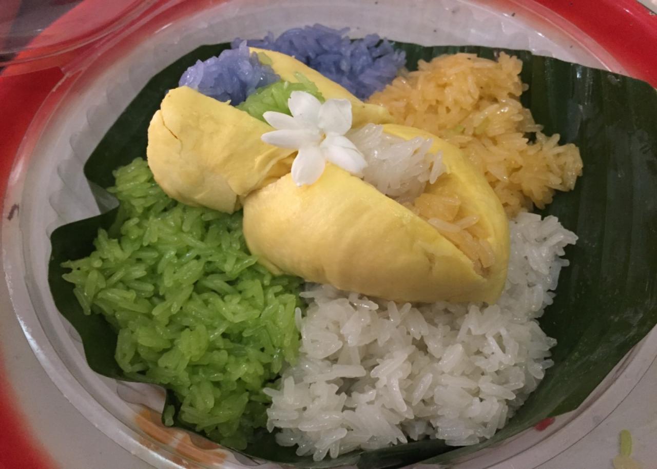 สำหรับข้าวเหนียวที่นำมาทำจะใช้ข้าวเหนียวเขี้ยวงู ส่วนสีที่ใช้ก็เป็นสีจากธรรมชาติ เช่นสีส้มจากแครอต สีเขียวทำจากใบเตย และสีม่วงทำจากดอกอัญชัน แล้วอบด้วยกลิ่นของดอกมะลิ เพิ่มความหอมให้กับข้าวเหนียวมูน ส่วนน้ำกะทิก็จะทำใหม่สดทุกวัน เมื่อรับประทานข้าวเหนียวพร้อมกับทุเรียนแล้วจะมีรสชาติทั้งหวานทั้งหอม ติดอกติดใจสำหรับผู้ที่ชื่นชอบรับประทานข้าวเหนียวมูนผลไม้สดอย่างแน่นอน
