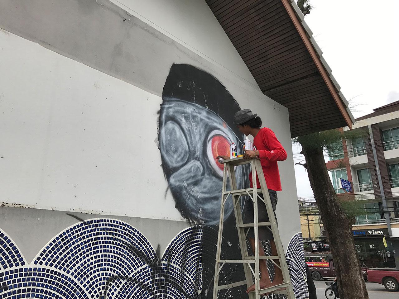ทั้งนี้ การวาดภาพแนวอาร์ตวันนี้ ได้วาดเป็นพิน็อคคิโอแบกถุงขยะถือไม้กวาด เช่นภาพเดิม แต่จะมีภาพของสัตว์น้ำเพิ่มเติม ซึ่งต้องใช้เวลาประมาณ 2 วัน โดยมีประชาชนที่ทราบข่าว ต่างเดินทางไปดูการวาดกันไม่ขาดสาย