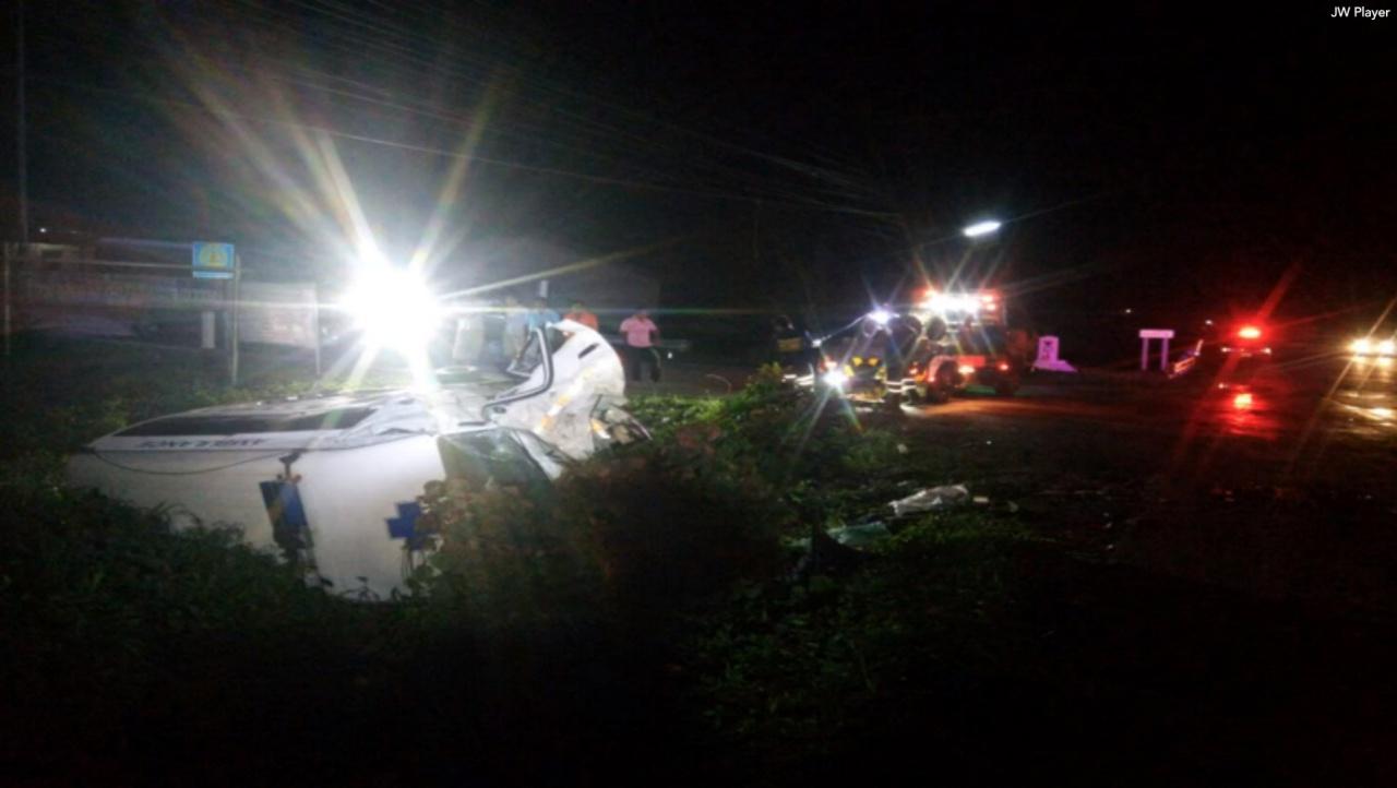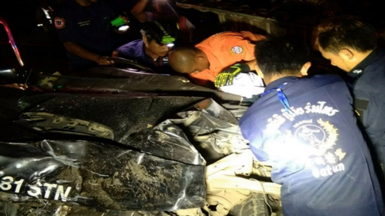 ชนเสียงดังสนั่น บนถนนกลางหมู่บ้านในสตูล รถฉุกเฉินรพ.มะนัง กลับจากส่งคนป่วย แซงไม่พ้นประสานงาอย่างจังกระบะขนปาล์มพังยับทั้ง 2 คัน ดับคาที่ 1 สาหัส 1 เจ็บเล็กน้อยอีก 6...