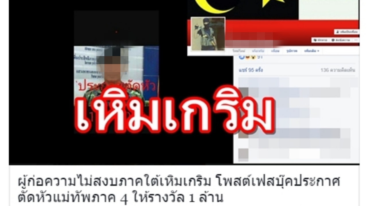 สุดเหิมเกริม! แนวร่วมภาคใต้ โพสต์เฟซบุ๊ก ประกาศ ตัดหัว พลโทปิยวัฒน์ นาควานิช แม่ทัพภาค 4 ให้รางวัล 1 ล้าน