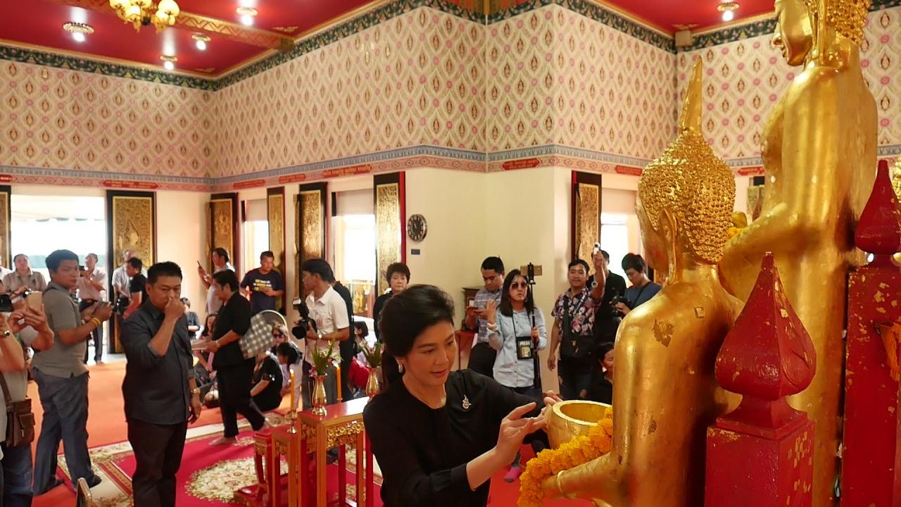 “ยิ่งลักษณ์” นั่งรถตู้ทะเบียน 4461 ไปวัดช่องลม จ.ราชบุรี เข้าสักการะหลวงพ่อแก่นจันทน์ ก่อนปล่อยนก 109 ตัวเพื่อความเป็นสิริมงคล พร้อมร่วมประดิษฐ์ดอกดารารัตน์ ท่ามกลางประชาชนต้อนรับอบอุ่น