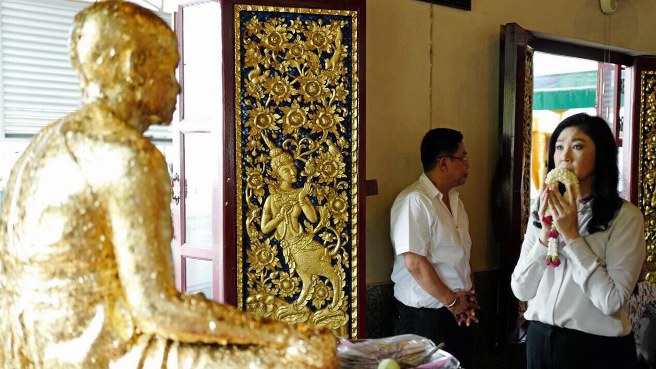 น.ส.ยิ่งลักษณ์ ชินวัตร อดีตนายกฯ กราบนมัสการขอพรรูปหล่อสมเด็จพระพุฒาจารย์ (โต พฺรหฺมรํสี) หลังทำบุญถวายสังฆทานพระ ที่วัดระฆังโฆสิตารามวรมหาวิหาร ก่อนถึงวันฟังคำพิพากษาคดีรับจำนำข้าว วันที่ 25 ส.ค.นี้.