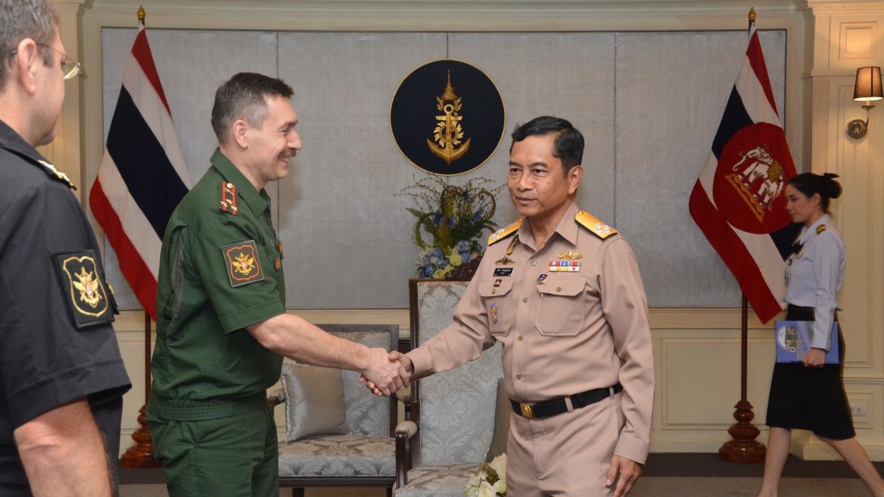 "บิ๊กนุ้ย" รับเยี่ยมคำนับจาก "ผู้ช่วยทูตทหารรัสเซีย" ในโอกาสครบวาระปฏิบัติหน้าที่ในประเทศไทย พร้อมแนะนำ ผู้ช่วยทูตทหารฯ คนใหม่ เข้ามาแทนในตำแหน่ง เพื่อกระชับความสัมพันธ์อันดีระหว่างกองทัพทั้งสอง...