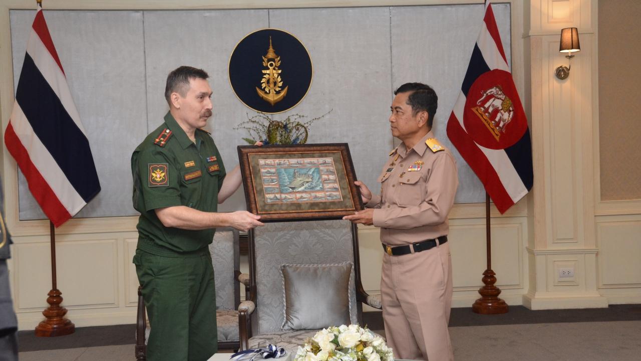 พร้อมแนะนำ นาวาเอก Alexander Popkov ผู้ช่วยทูตทหารสหพันธรัฐรัสเซีย ประจำกรุงเทพมหานคร ที่เข้ารับตำแหน่งหน้าที่ใหม่ในประเทศไทย ณ ห้องรับรองอาคารส่วนบัญชาการกองทัพเรือ พื้นที่วังนันทอุทยาน ถนนอิสรภาพ เขตบางกอกน้อย กรุงเทพมหานคร