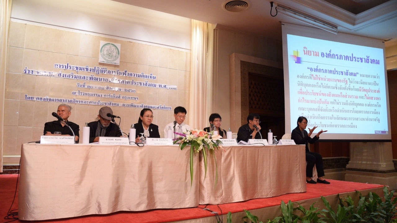 เมื่อวันที่ 31 ส.ค.60 ที่โรงแรมรามาการ์เด้น ถนนวิภาวดี กองกิจการอาสาสมัครและภาคประชาสังคม กรมพัฒนาสังคมและสวัสดิการ กระทรวงพัฒนาสังคมและความมั่นคงของมนุษย์(พม.) จัดประชุมเชิงปฏิบัติการรับฟังความคิดเห็น ร่างพระราชบัญญัติ (พ.ร.บ.) ส่งเสริมและพัฒนาองค์กรภาคประชาสังคม พ.ศ. ... ระหว่างวันที่ 30-31 สิงหาคม 2560 โดยมีผู้เข้าร่วมประกอบด้วย ผู้แทนองค์กรภาคประชาสังคมจากทั่วประเทศ หน่วยงานภาครัฐ ภาคประชาชน จำนวน 200 คน