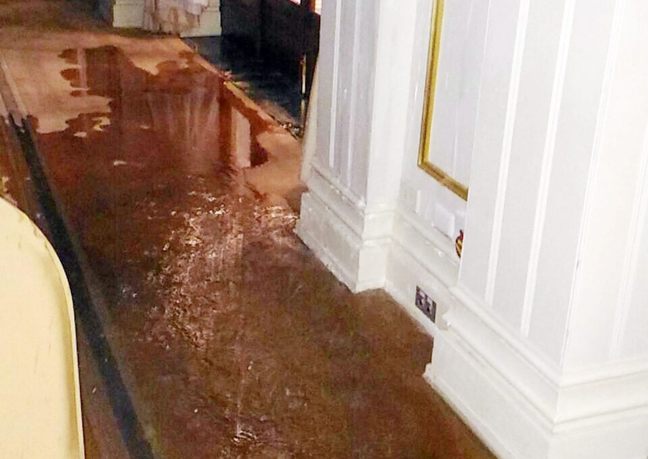 ขณะเดียวกัน ระหว่างที่เจ้าหน้าที่เร่งดำเนินการอยู่นั้น ปรากฏว่า ได้เกิดไฟฟ้ารั่วไหลจนทำให้เจ้าหน้าที่บางคนถูกไฟฟ้าดูด แต่ไม่เป็นอันตรายถึงชีวิต โดยช่วงบ่ายวันที่ 11 ต.ค. เจ้าหน้าที่ได้เร่งแก้ไขระบายน้ำบริเวณห้องโถงจนพื้นที่แห้งเพื่อให้ทันนายกฯ ออกกำลังกาย แต่ยังพบว่า มีบางจุดยังต้องนำถังน้ำมารองน้ำ เนื่องจากยังมีน้ำที่รั่วไหลลงจากเพดาน