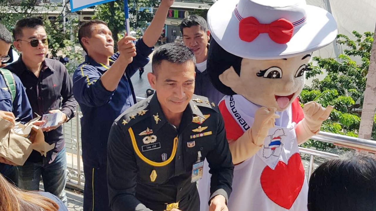 "ผู้พันเบิร์ด" ควง "น้องเกี่ยวก้อย" ตะลุยใจกลางกรุง พบประชาชนแจกเอกสาร "สัญญาประชาคม สัญญาใจไทยทั้งชาติ" หวังสร้างความรับรู้ เกิดสามัคคีปรองดอง ผุดไอเดียทำสติกเกอร์ไลน์